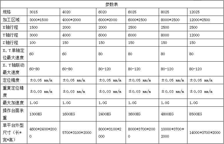用途:加工对象为金属类板材(碳钢、不锈钢、铝板、铜板),可切割,穿孔,坡口切割等功率范围:1000-20000(W)介绍:集成光纤激光器、切割软件控制系统、恒温冷水系统、低温切割头、伺服电机及其控制模块、导轨齿条、润滑系统、除尘系统等,结合公司自主研发龙门式数控机床,调控单元及模块,经长时间耐久和疲劳度测试,其切割精度、速度均满足产品生产要求,能为用户稳定切割提供有效保障。参数:切割样品: