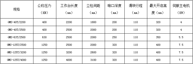 名称:扭轴同步数控折弯机型号:KG-GMS 规格:见下面表格